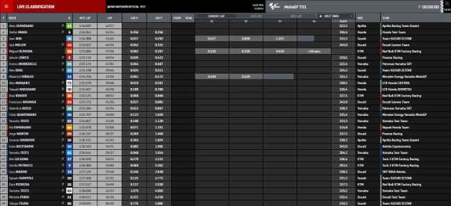 Por detrás de los dos de cabeza se ha situado el campeón, un Joan Mir al que Suzuki ya ha dado la posibilidad de probar el motor de la GSX-RR de 2022. Lo llevó el probador Guintoli en la jornada del viernes y hoy estaba a disposición de los dos oficiales de la fábrica. Habrá que preguntarle si el tiempo lo ha hecho con ese nuevo propulsor o el del 2021, que es el mismo del año pasado, al estar congelados los motores de esta temporada por reglamento para abaratar costes. Sólo Aprilia se libra de esa medida, porque es la única fábrica a la que le quedan concesiones en la parrilla debido a su flojo palmarés en la clase reina.