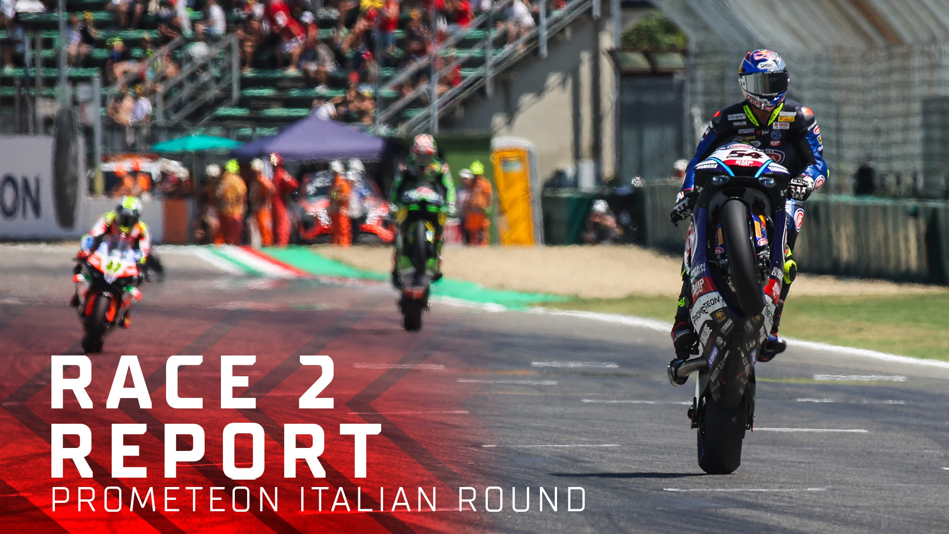 Toprak Razgatlioglu (Pata Yamaha Prometeon WorldSBK) recortó la diferencia en la clasificación del Campeonato del Mundo MOTUL FIM Superbike en 25 puntos, aprovechando la caída de Álvaro Bautista (Aruba.it Racing – Ducati) en la primera vuelta en el Autodromo Internazionale Enzo e Dino Ferrari di Imola. El campeón de 2021 tuvo que luchar por la victoria en los últimos compases de la Carrera 2 del Round Prometeon de Italia, mientras que Axel Bassani (Motocorsa Racing) buscaba su primera victoria, que se le sigue resistiendo.